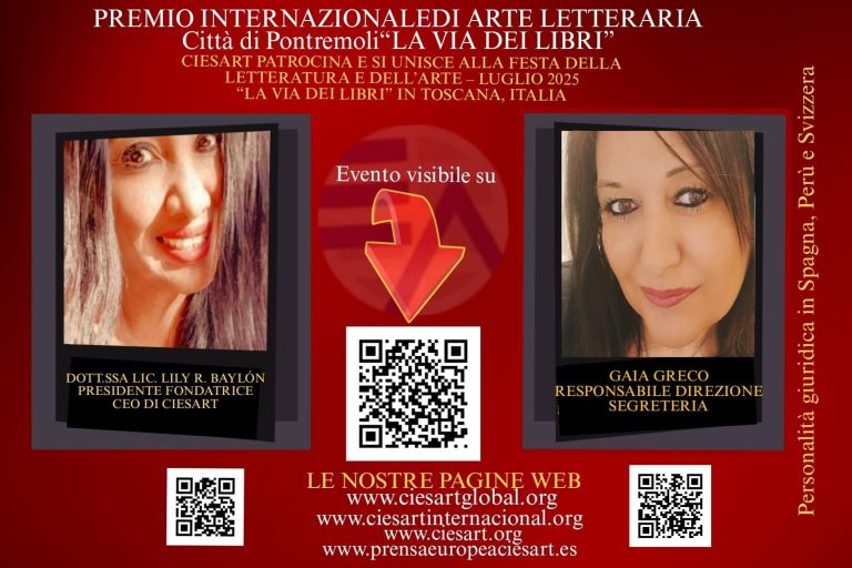 En colaboración con: ASOCIACIÓN CULTURALMENTE TOSCANA Y ALREDEDORES, CIESART, CÍRCULO INTERNACIONAL DE ARTE LITERARIA LAS NUEVE MUSAS,