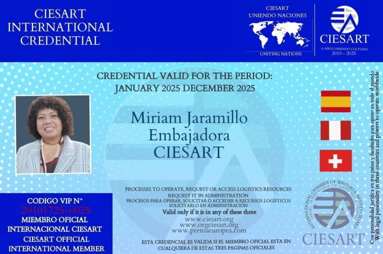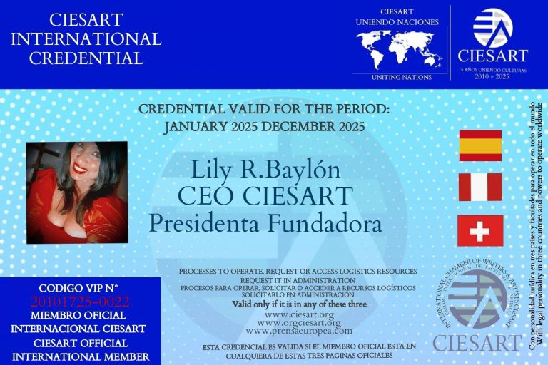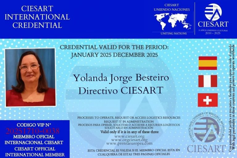 Los Miembros Oficiales Internacionales de CIESART cumplen una labor esencial en todo el mundo, alineados con los estatutos de la organización. Se enfocan en defender los derechos humanos, preservar el patrimonio cultural y promover el bienestar global. A través de sus proyectos y misiones, buscan generar un impacto positivo y mejorar las condiciones de vida, promoviendo la cooperación internacional y el desarrollo sostenible para una humanidad más justa y equitativa.